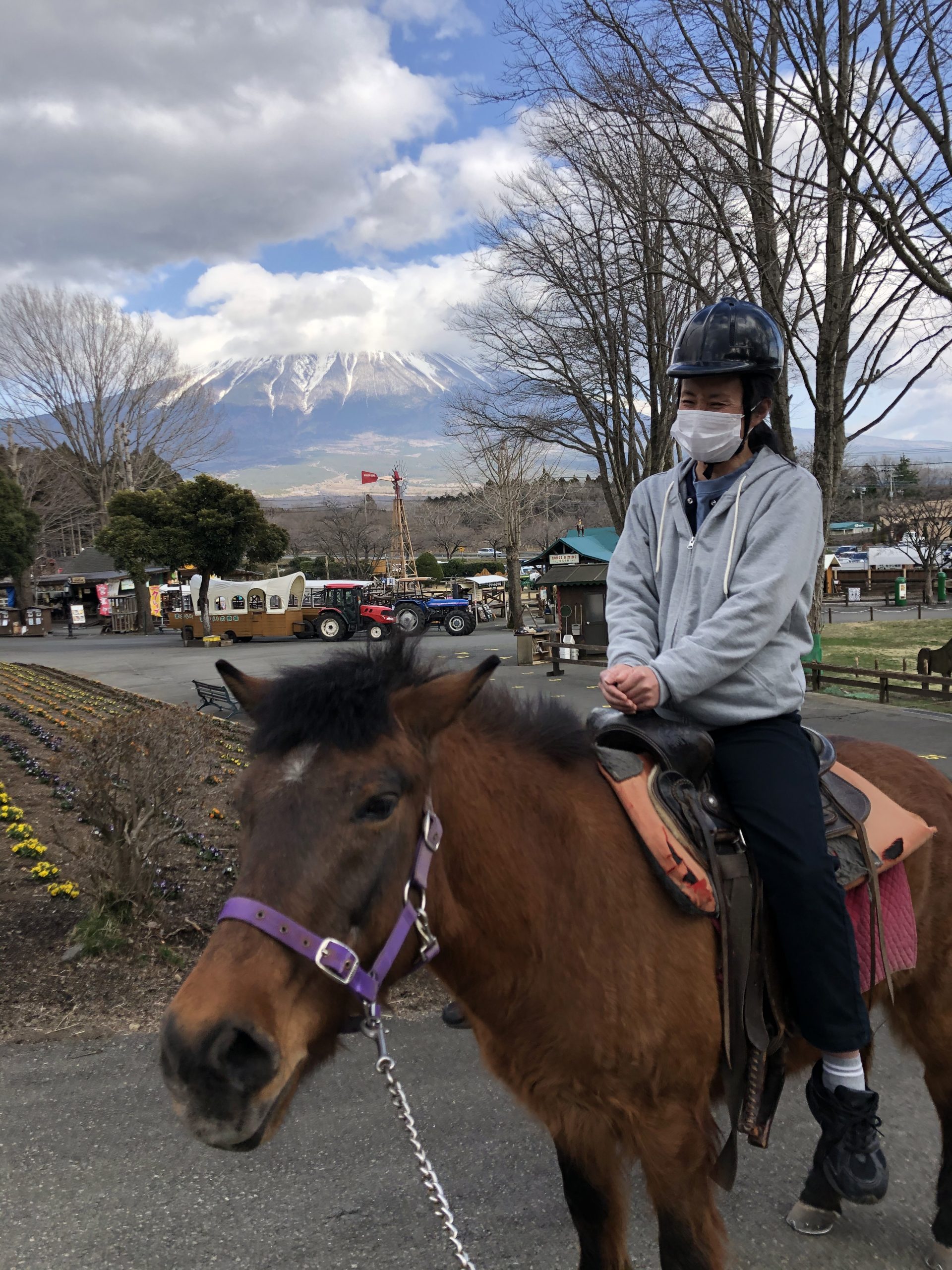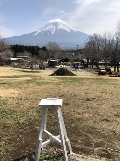 草原&人&富士山だけで写真が撮れる山、早く整備したい(写真中央の黒い山)