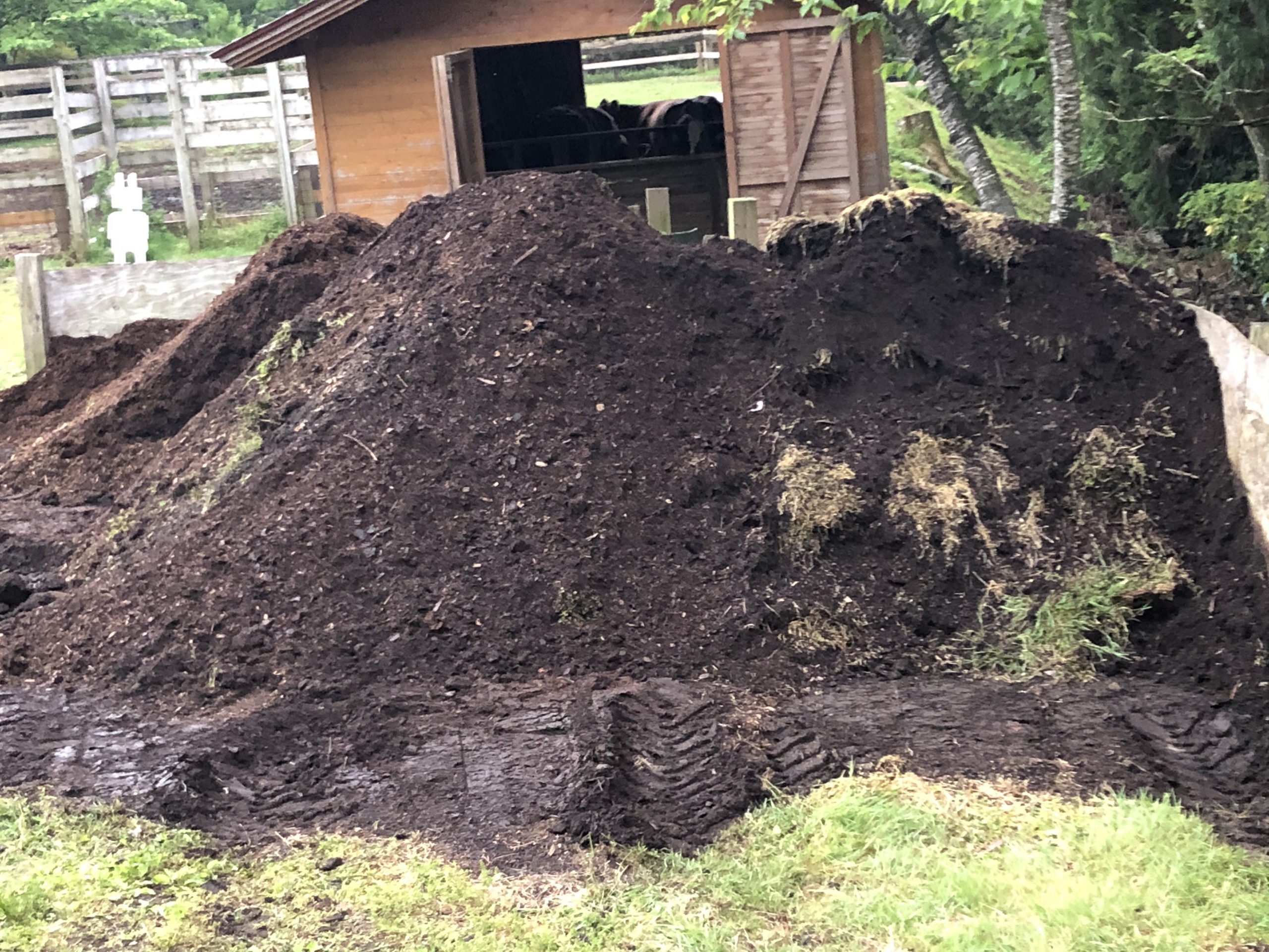 夕方、ウッドチップの山、ちょっと低く広がりすぎてみっともなかったので
