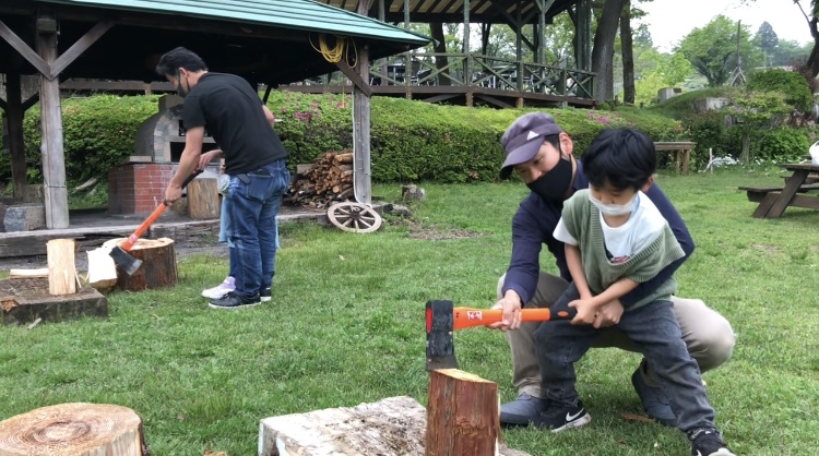 足の位置、振り方等、ただしい道具の使い方を学びながら・・マキワリ!