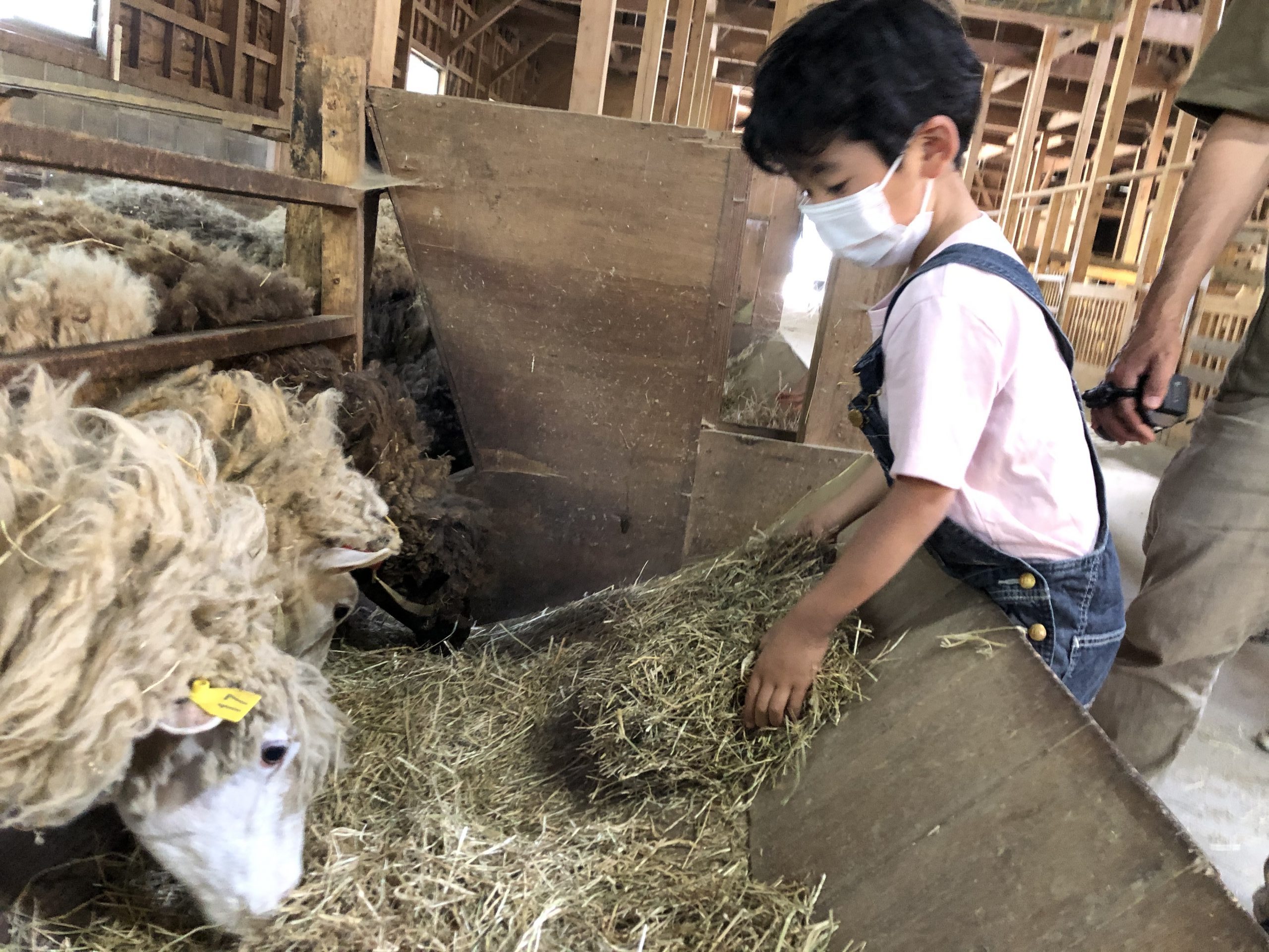 説明を聞いた後、羊たちに朝ご飯をあげる♪