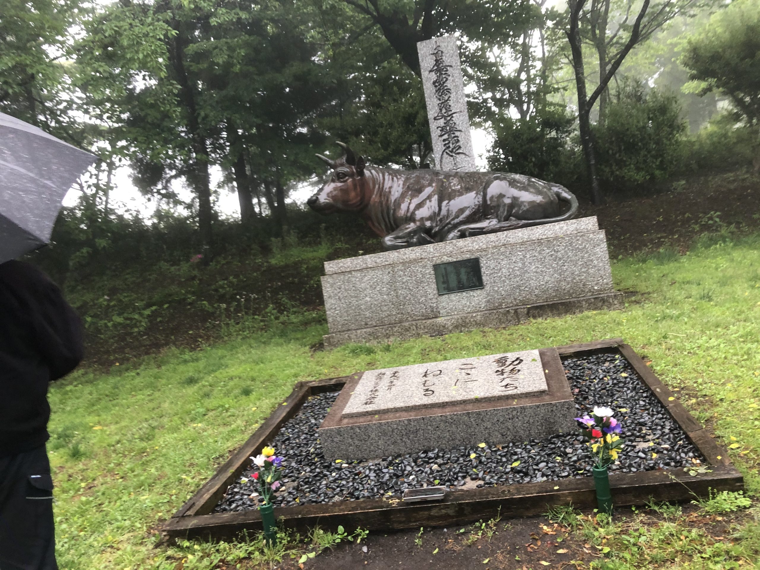 山の上の動物慰霊碑。