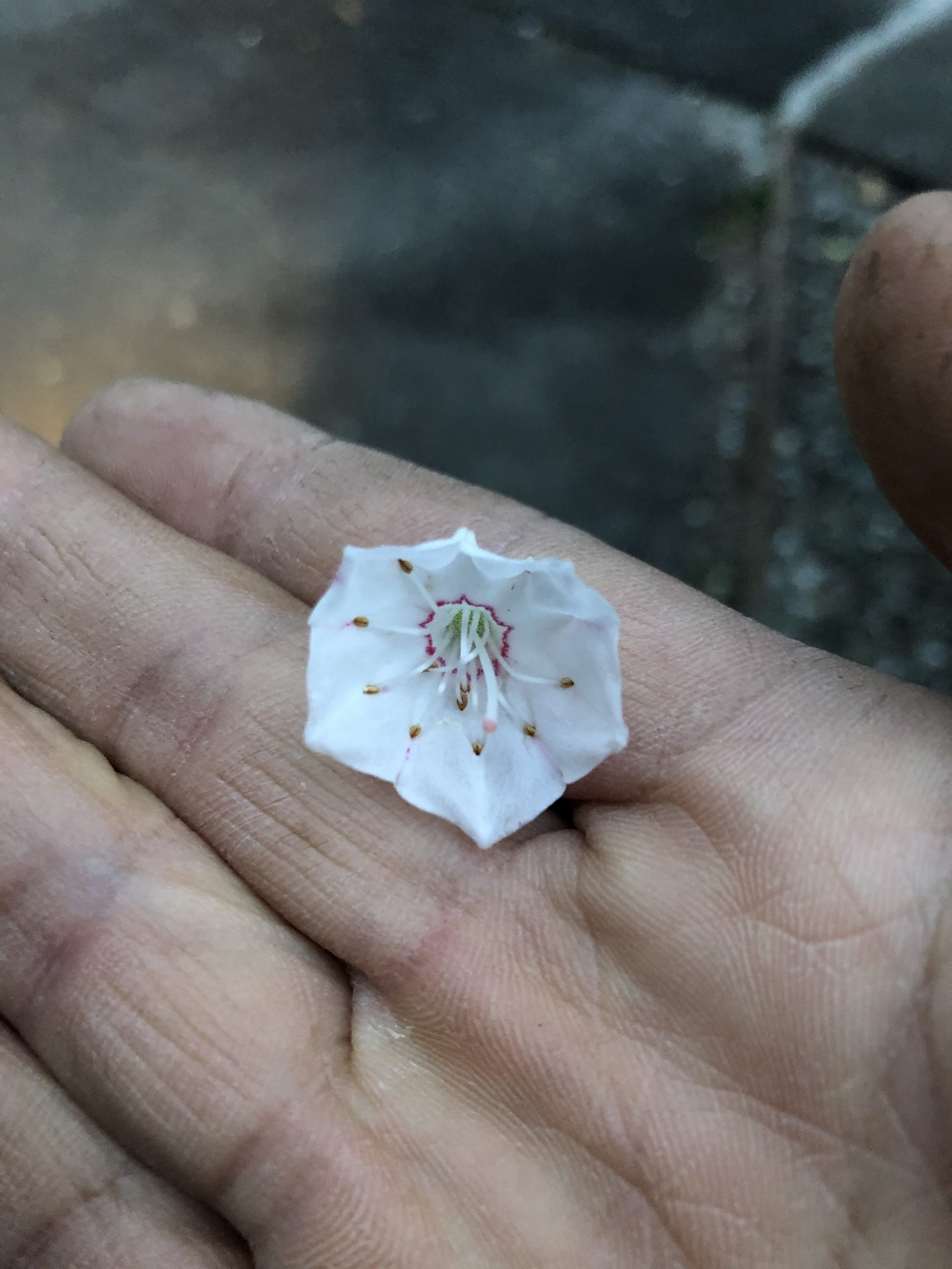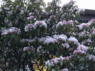 馬のつなぎ場前に1本だけある「カルミア」(正式名称)。