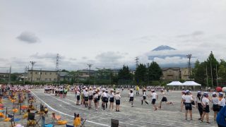 1・2年生、3・4年生、5・6年生と3つに分け、順番に校庭で開催し、密を避ける工夫。