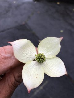 ドクダミなどと同じく、花は「中央の緑色の部分」。
