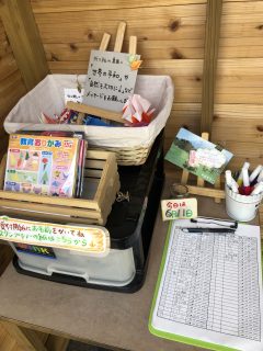 折り紙と作品を入れる箱が設置されておりますw