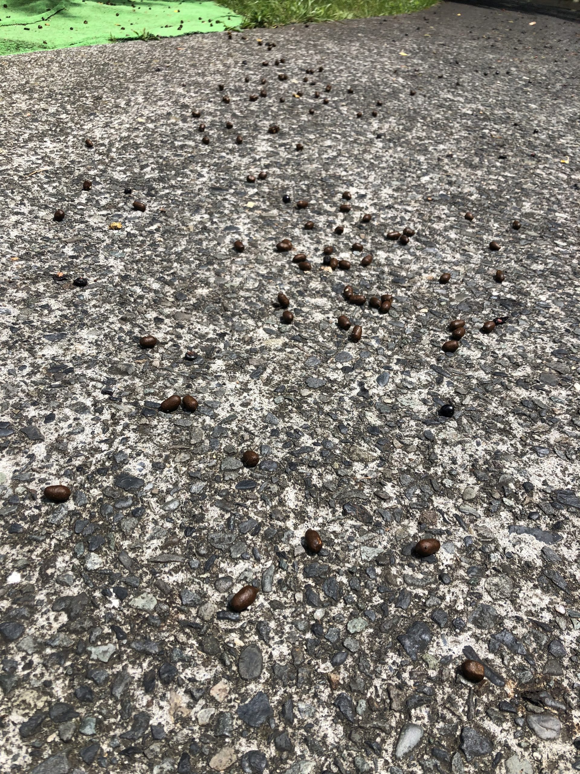地面に黒いものが大量に…。