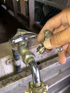 手でひねる部品のらせんのミゾが・・・削れてなくなっていた。(手で持っている部品)