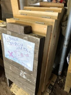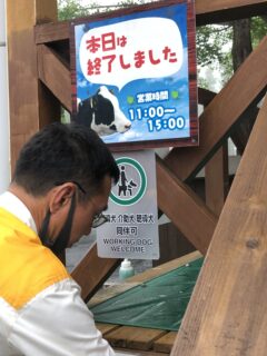 「盲導犬と一緒に入店できます」のステッカーを牧場中に貼りまくり