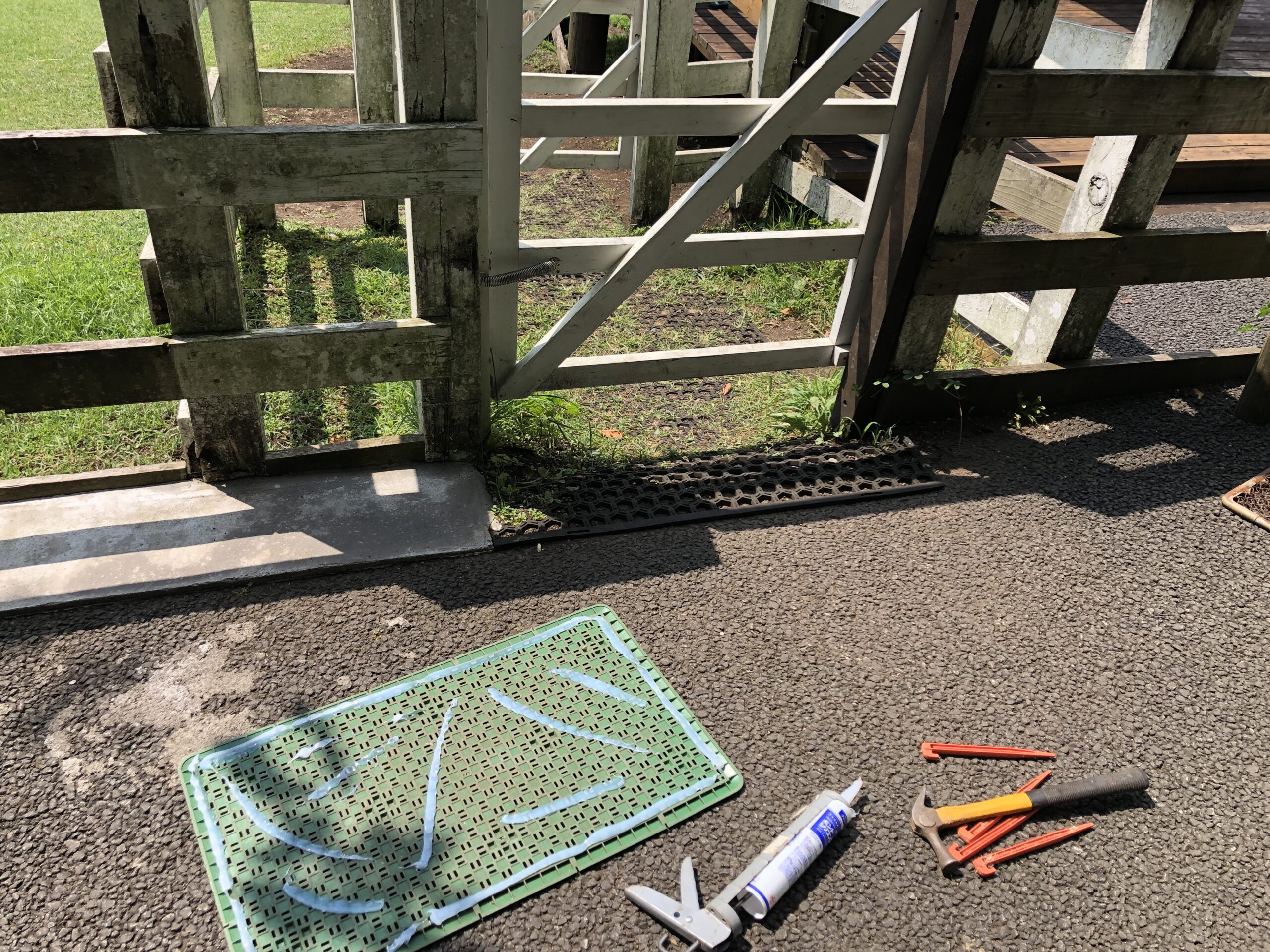 アンケートで「羊の放牧場に泥落としマットが欲しい」とありまして、