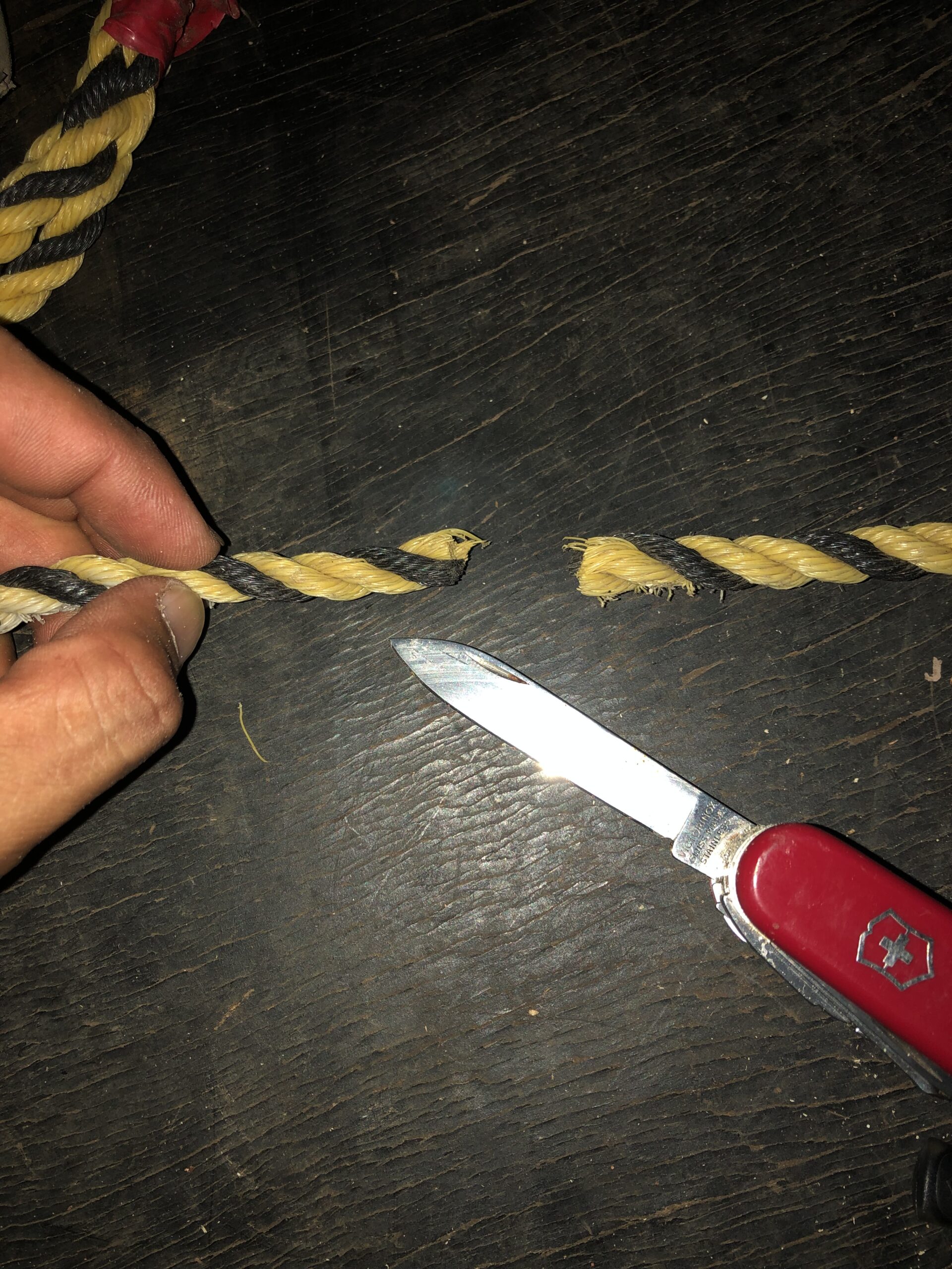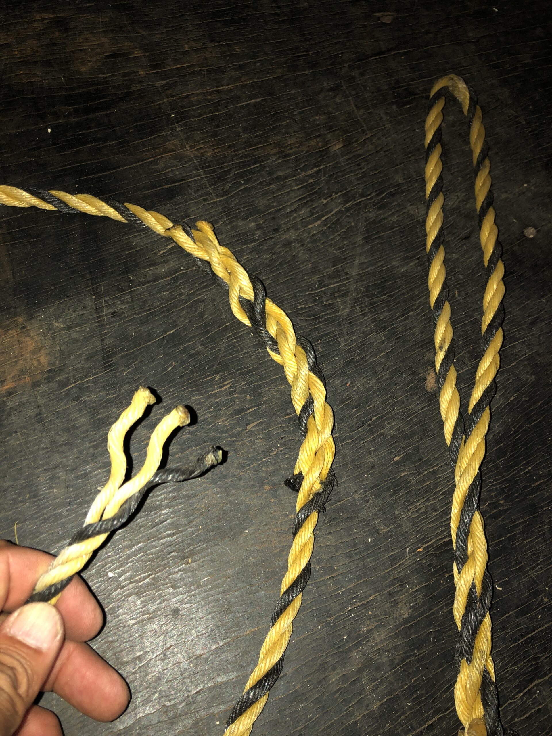 ロープの補修処理をする。