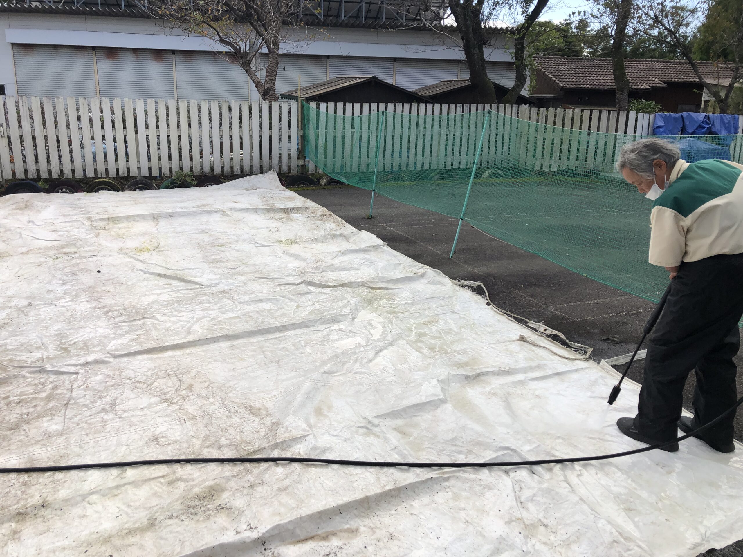 木材にかけたりする巨大なシート(旧青空テラス屋根材)を