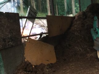 堆肥止めにコンパネでは、いくらパネコート(オレンジ色の表面が強い加工)でも