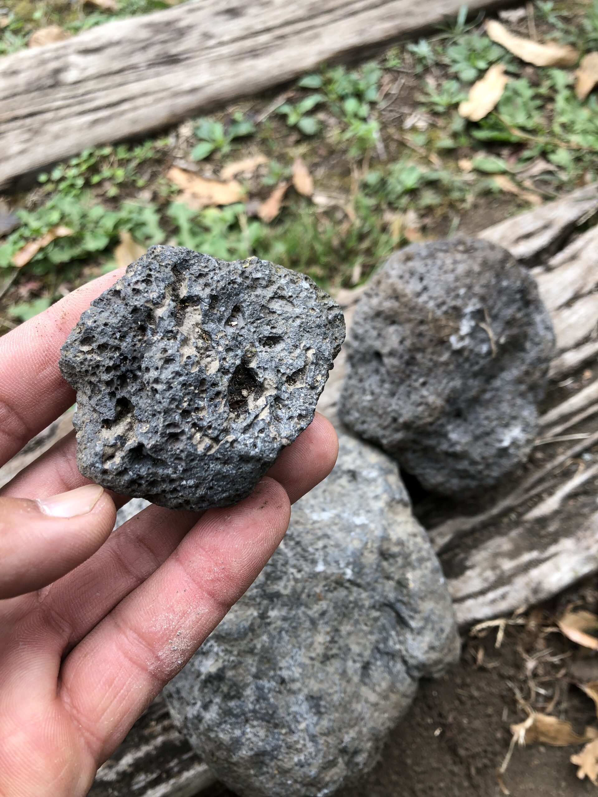 これは「スコリア」。もともとは高温でドロドロにとけていた「溶岩」だったものです。