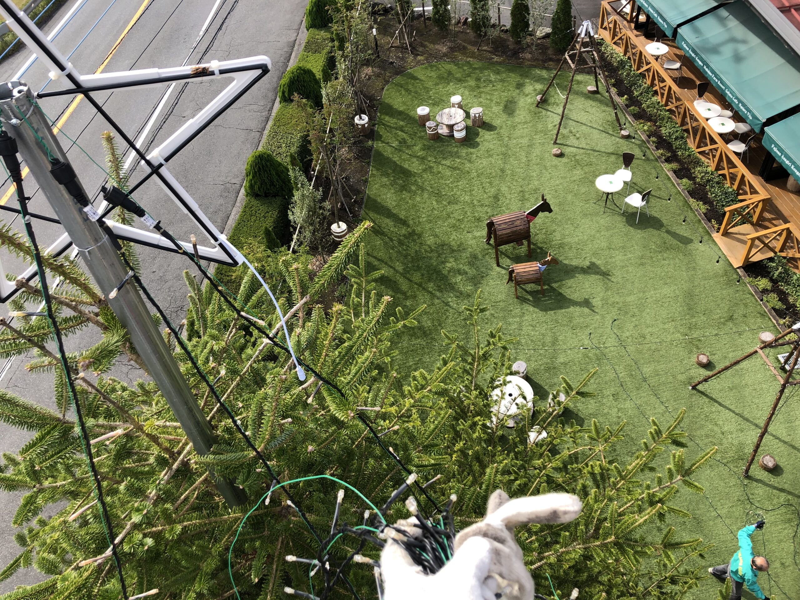 高さ8メートルのグランテラスの象徴「モミの木」。