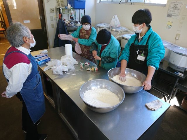 KさんSさんの指導の下、餅花を作る!(昨日)
