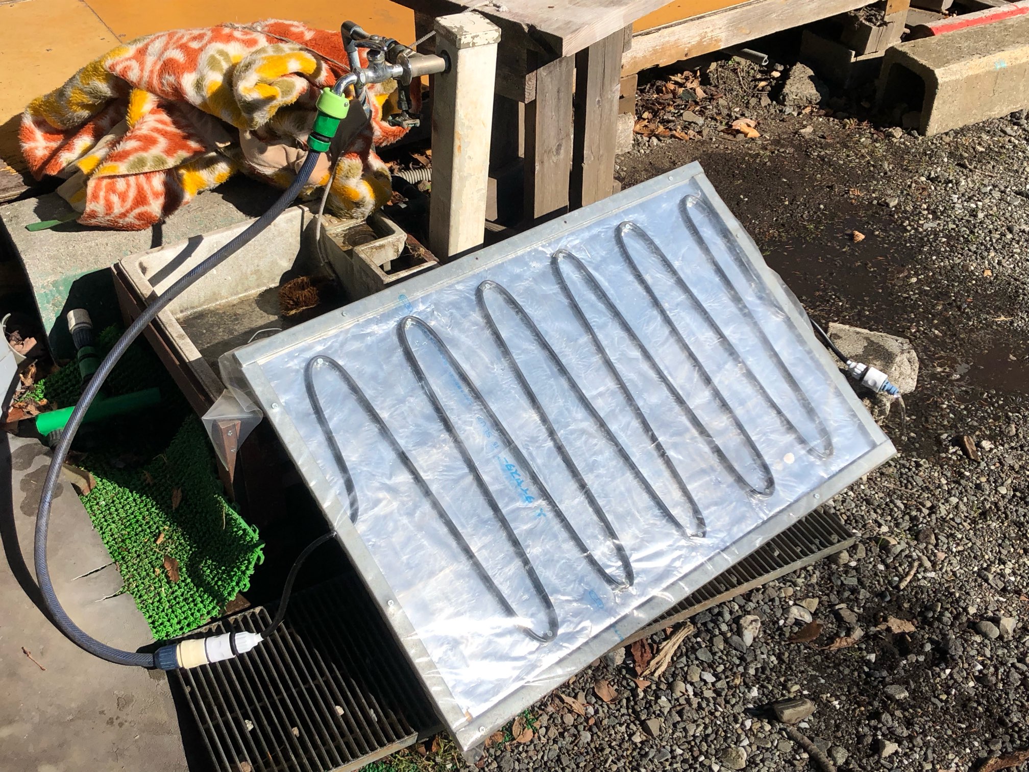 太陽光で手洗いの水が温かくなる仕組み。