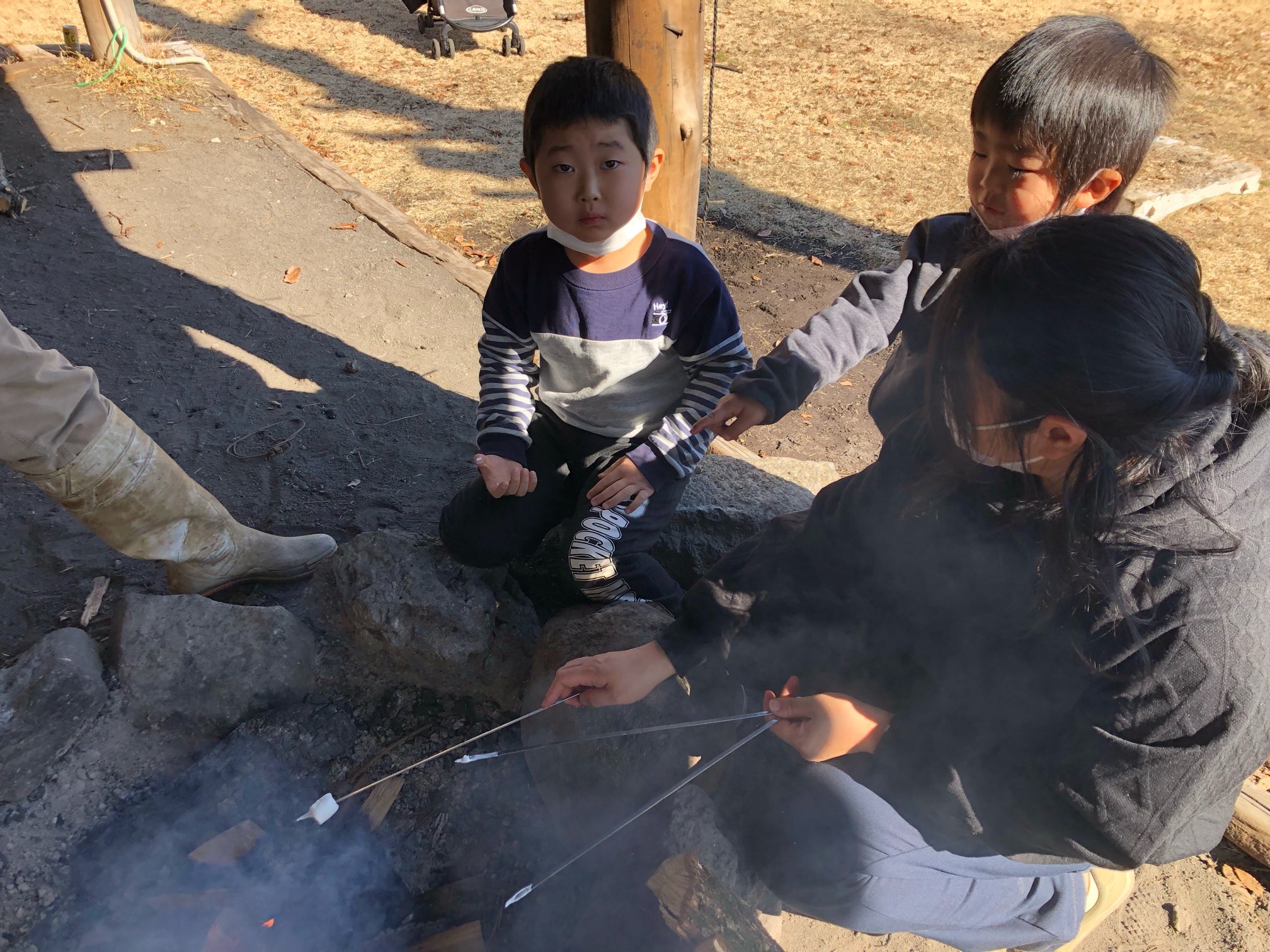 場内ではちょうどタクマ君達が「マキワリ&焼きマシュマロ」を体験中でしたw