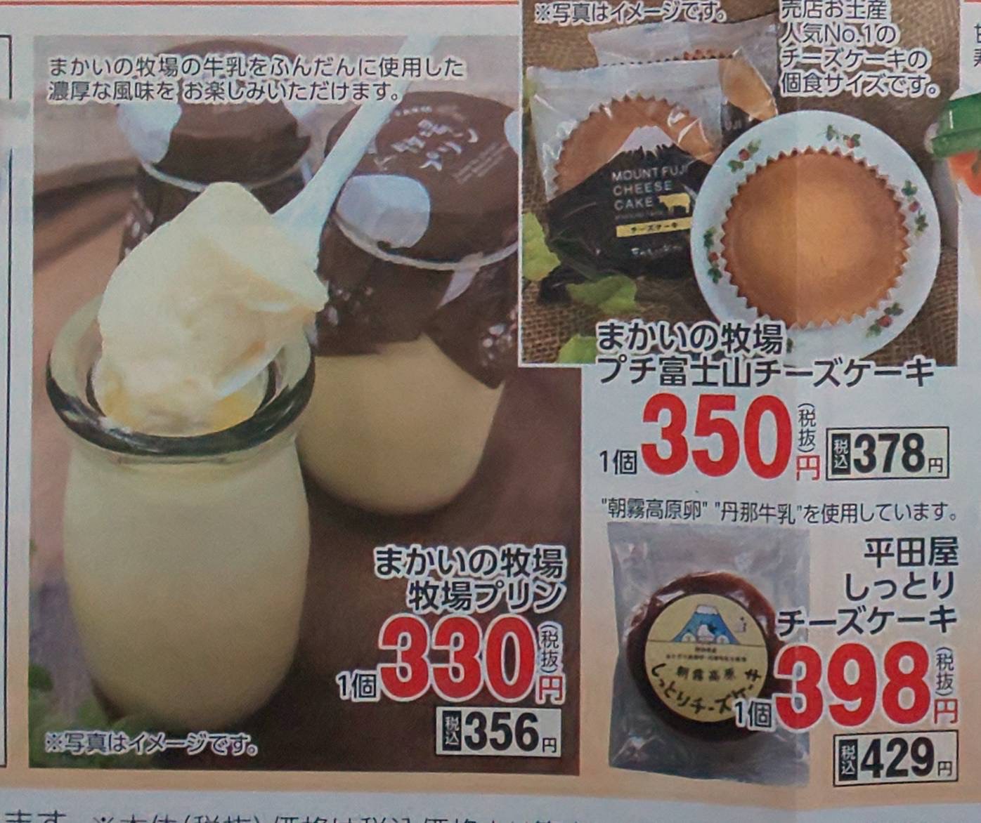 まかいの牧場のチーズケーキ(ちっさい方)とプリンを