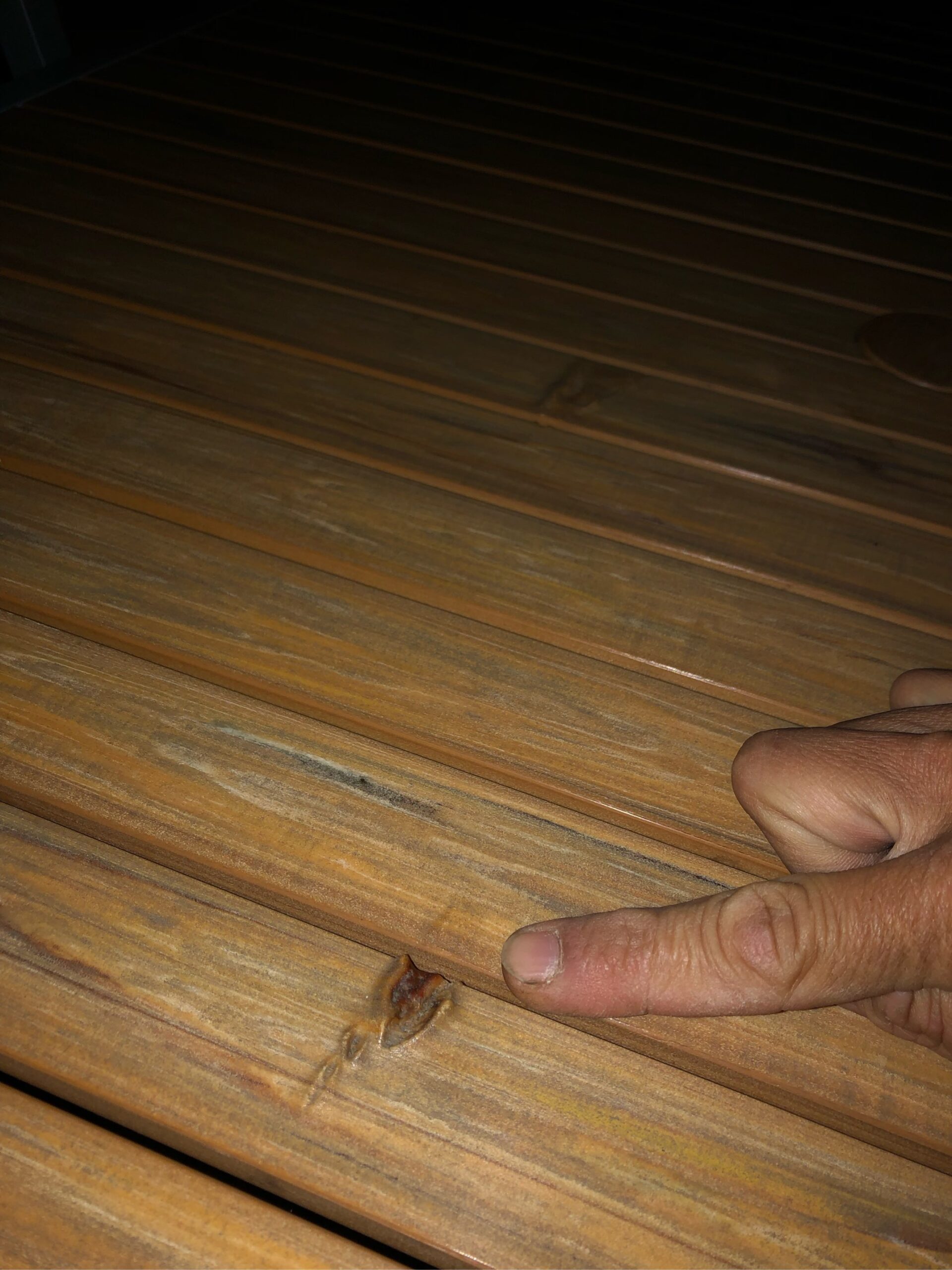 テーブルの焦げ跡は、「水のピッチャー」を置いたところで