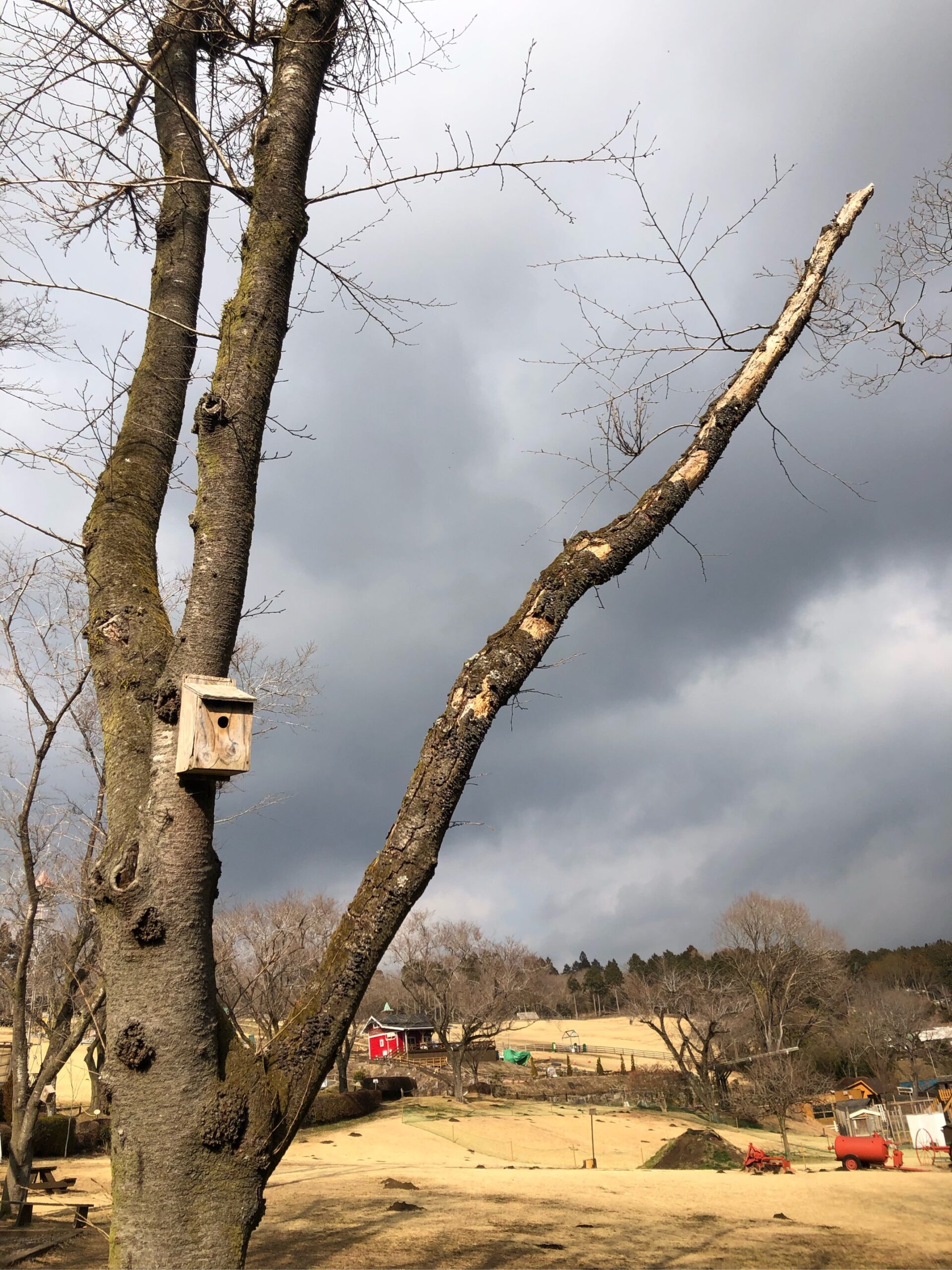ツリーハウスは、今しばらくは取り壊さずに、「落枝の危険を取り除く」だけに。