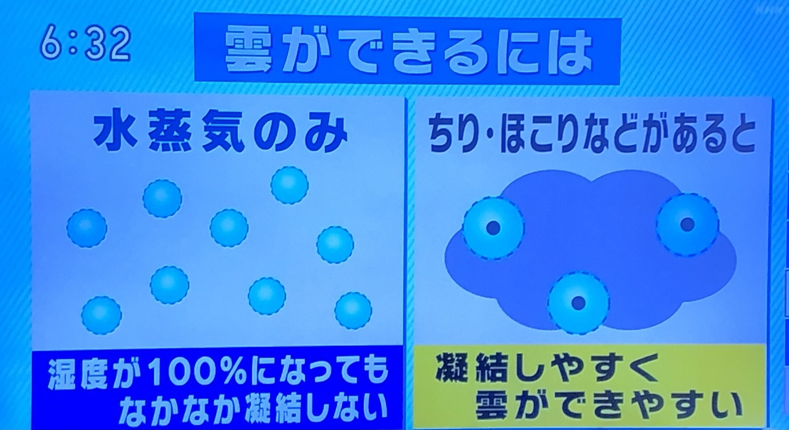 大気中のホコリが少ないと雲ができにくい。(科学的事実)