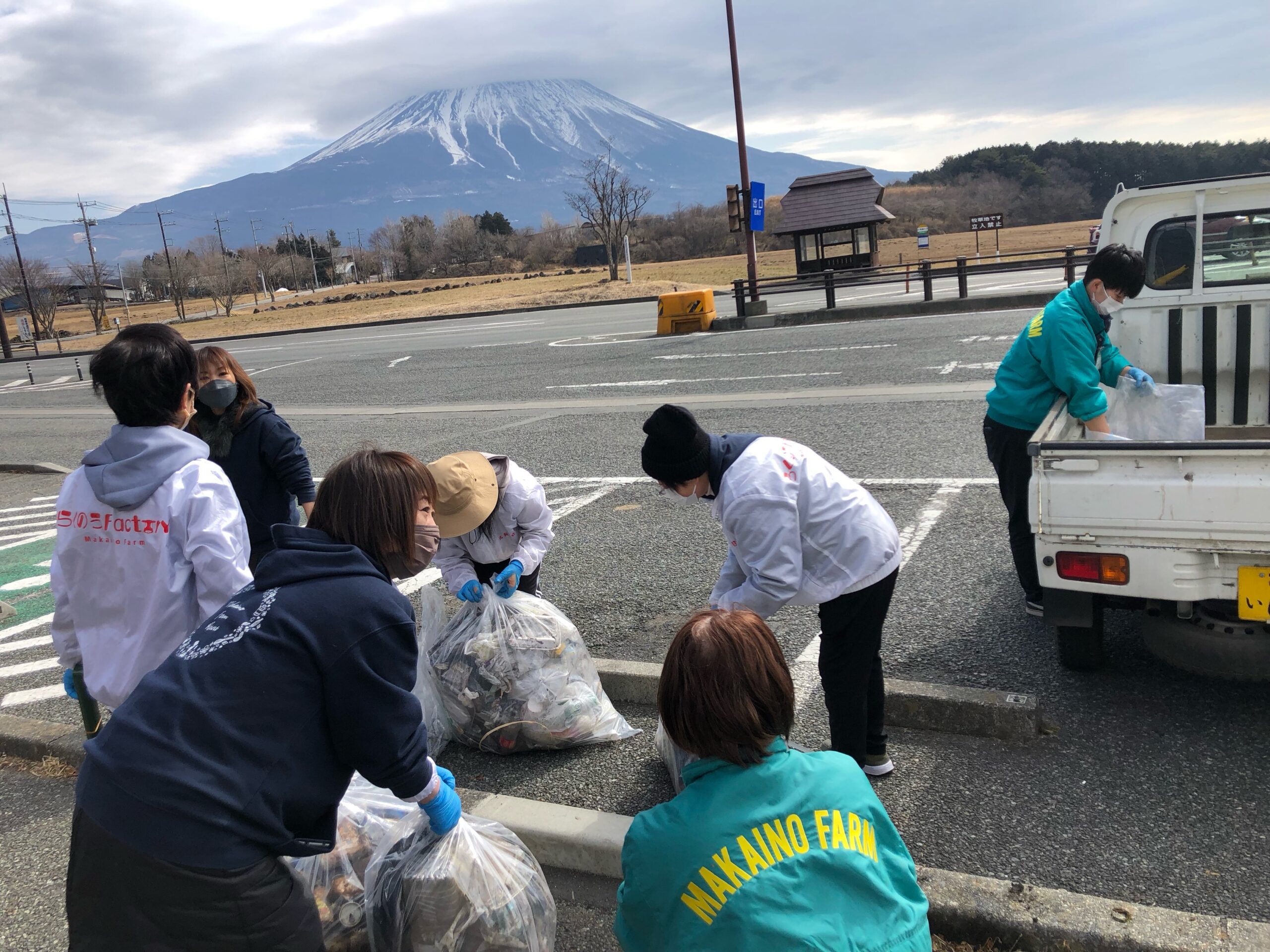 牧場から下の方向(白糸の滝方向)と、朝霧高原の「さわやかパーキング」を清掃!