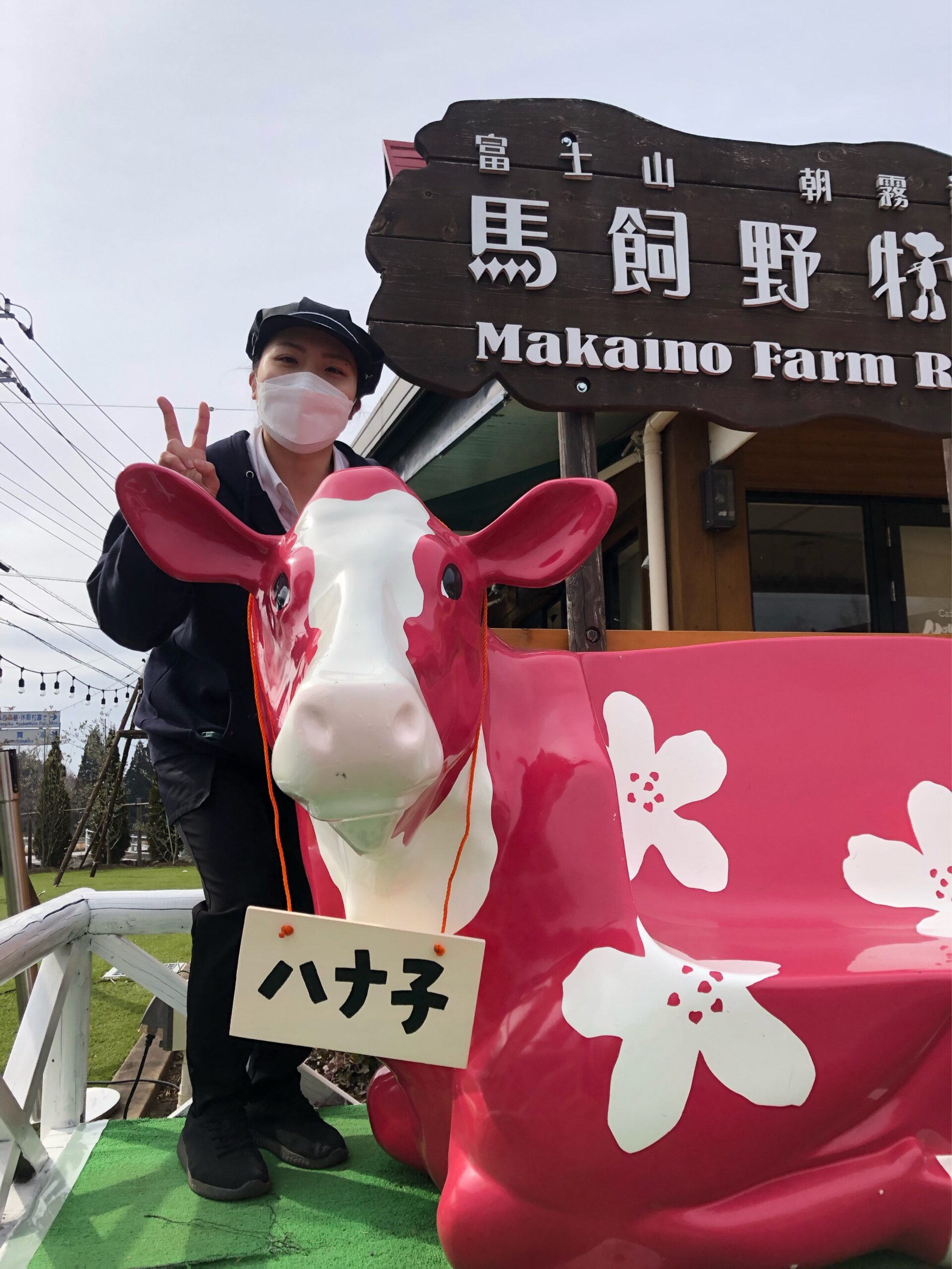 ヴィータ前のピンクのウシベンチ(ハナ子)は、女性スタッフが磨いたり飾ったりしてお世話して