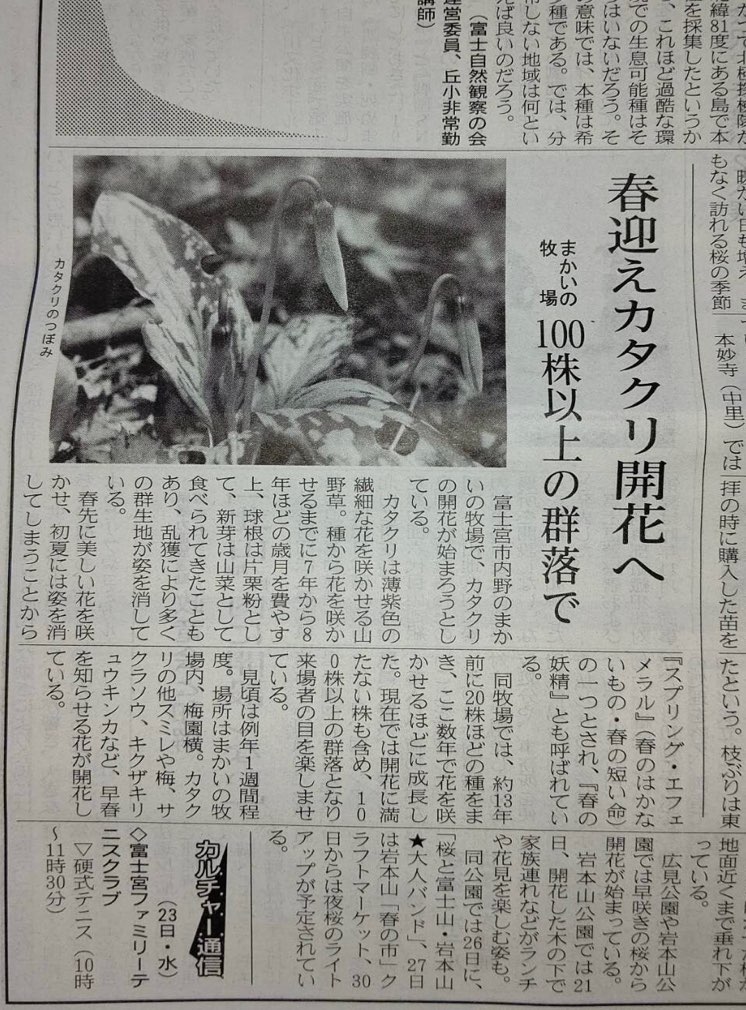 題名の「カタクリ開花へ」の【へ】に、こんな話↓が隠れております…