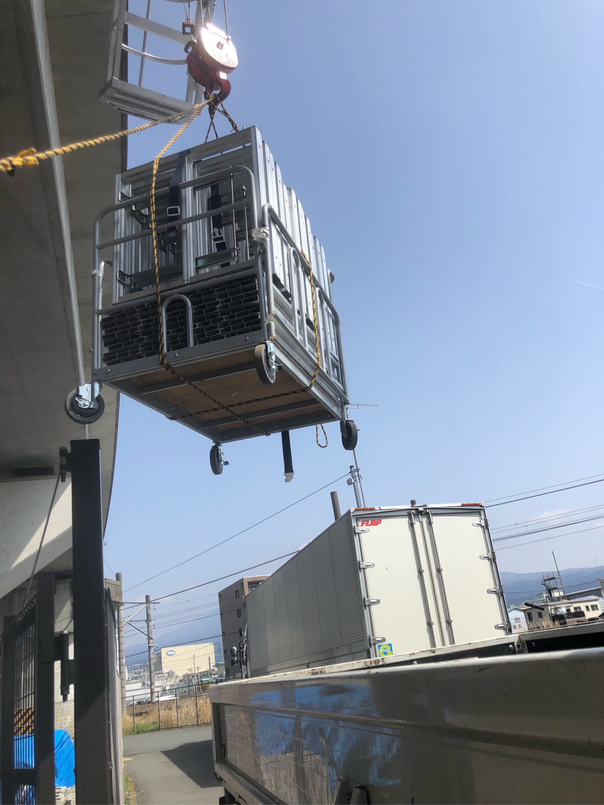 台車ごとフックで吊り上げて積み込む。(×4台)