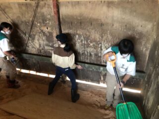 マツダお姉さんやサイトウお姉さんが、傷んだ壁を直す。