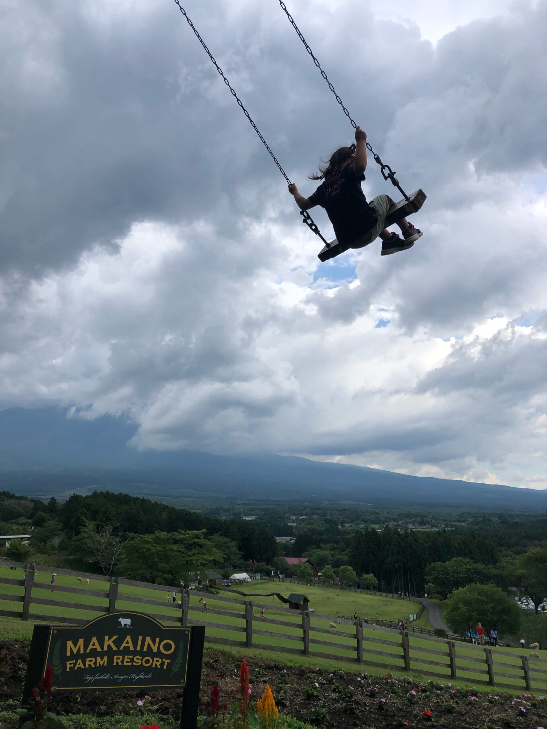 曇天でも、大空に吹っ飛ぶ1枚を!(ハイジのブランコ)