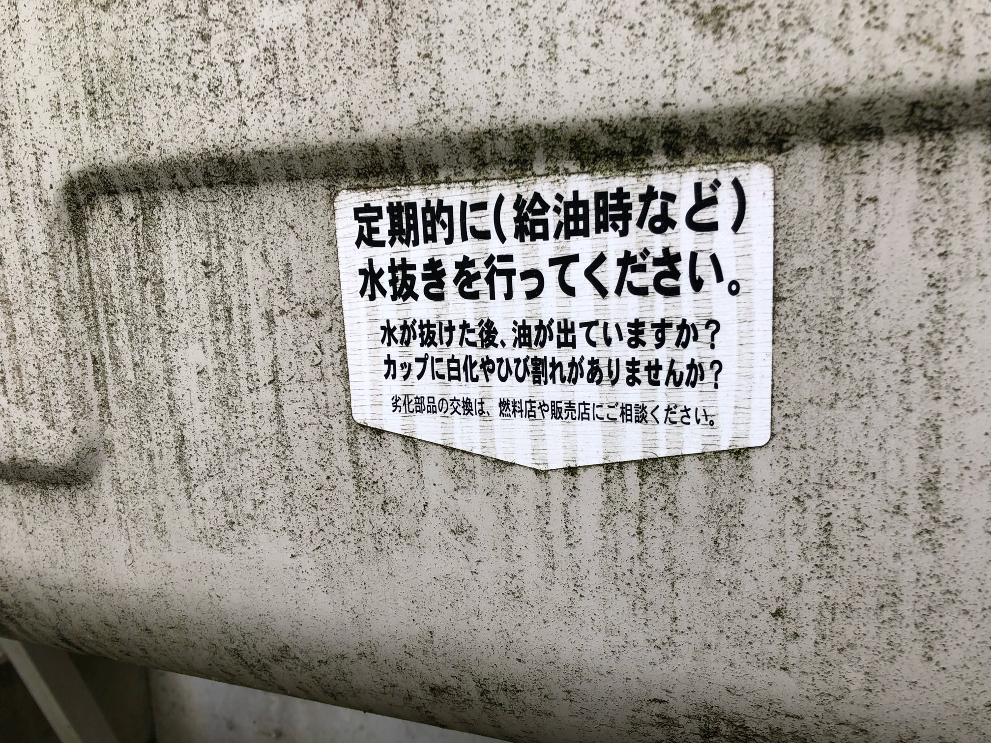 燃料(油)の中に結露などで水分が入ると、下にたまりますから