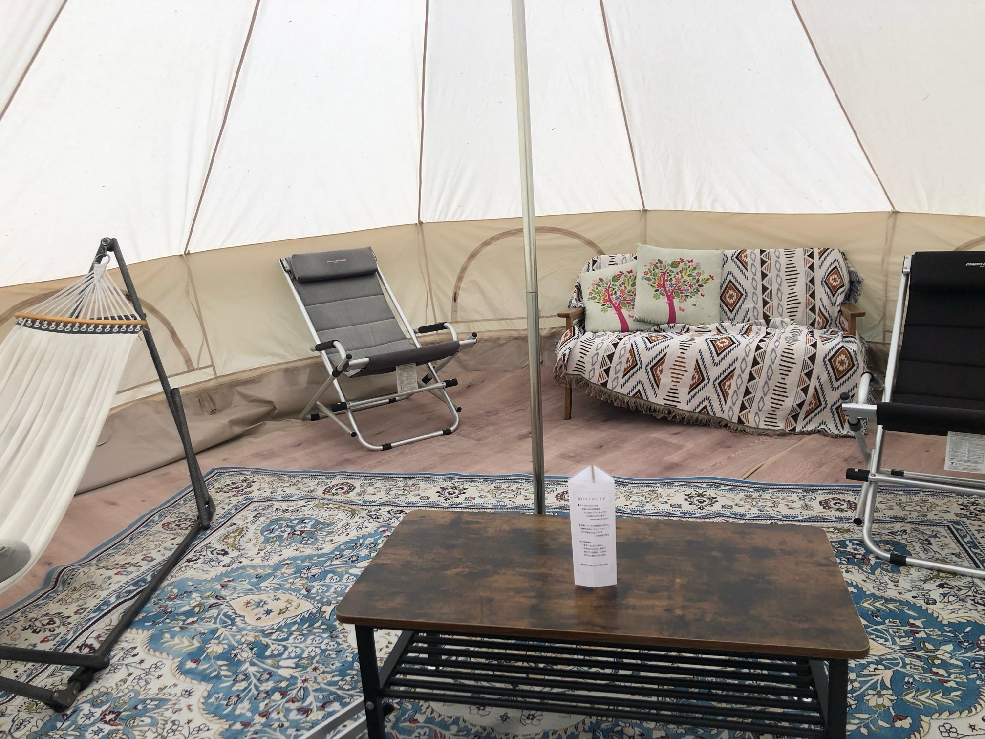 ※写真は、昨日夕方見に行ったグランピングテント内