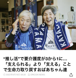 サッカーを応援するようになったら、体の機能が超回復してしまうお年寄りが激増中! という素敵なお話。