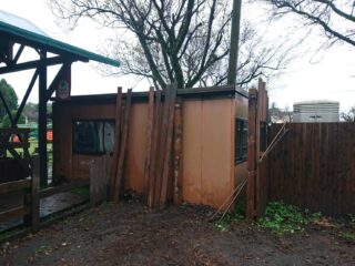 ツノを研ぐ行動を「この建物」で行っていたこともあり、建物がどんどんベコベコになって破壊されかけたのです。