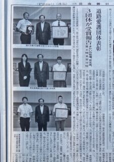 スタッフ皆で21年も続けてきている道路清掃を国から(国土交通大臣から)表彰されたことの市長への報告会がありました。その記事です。