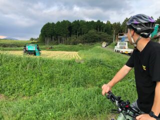 白糸ファームさんの田んぼで、ちょうどマツキお兄さんたちがイナワラ(餌)回収をしているところに通りがかるw