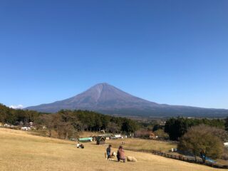 「振り向いて撮ると、後ろには毛無山(その麓にある「ふもとっぱら」さんで泊まりました)」