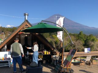 贅沢な地元食材朝食、富士山と朝日を眺めながら頂く。