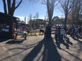 お散歩ヤギの説明を受けている方々の向こう(中央広場)に人だかりが…
