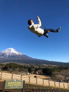まかいの牧場の(富士山から見て)後ろの山が、白い!