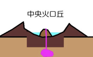 この図の様な火山を「カルデラ」と呼び (なんか中学生の頃学んだような…)