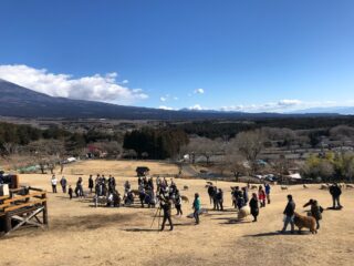 11:30に乳しぼり会場にて受付で、毎週末開催中の「シイタケ菌打ち体験」。