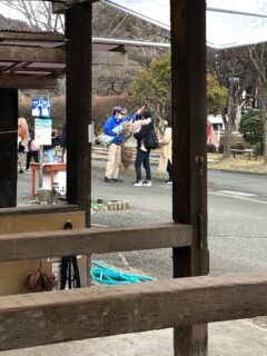 雨が降り始め、イデお兄さんが「傘の束」を抱えて、お客様に配りまわる瞬間を発見。