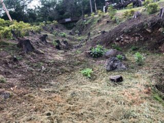 ボッサボサだった谷を、営繕さんが草刈りしてくれました。