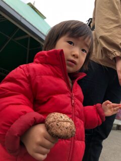「しいたけ、離さないんですよ~♬」とお母さん❤