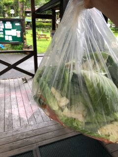 レストランから出た、ニンジンの皮やヘタ・キャベツの外葉などを動物に届ける。