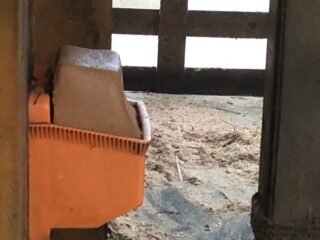 ウシやヤギヒツジの所に、オレンジ色のレンガの様な塊があります。