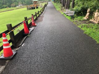 石像前のコンクリが流されバキバキに‥