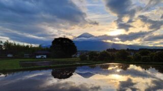 キャンスポ、アクティビティ班のHさんが、「さっき撮った📸自転車ガイドでまだ【逆さ富士】イケるね♪」と、今朝5時頃撮った写真🏔
